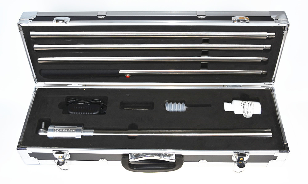 3、連接:根據高度適當選取連接桿數量,然后將槍頭、連接桿、電池桿按順時針的方向轉連接。拆卸按相反的方向操作。